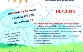 Informace k organizaci a průběhu zápisu k povinné školní docházce od školního roku 2026/2027 Zápis se koná 5. února 2026 od 13:30 do 18:00 hodin v 1. třídě [...]
