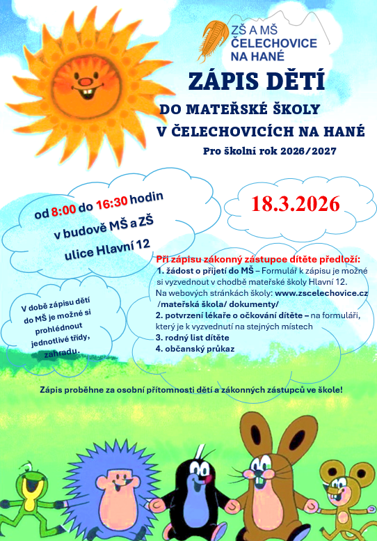 Zápis dětí do mateřské školy v Čelechovicích na Hané pro školní rok 2026/2027 proběhne 18.3.2026 od 8:00 do 16:30 hodin v budově MŠ a ZŠ (Hlavní 12, Čelechovice [...]